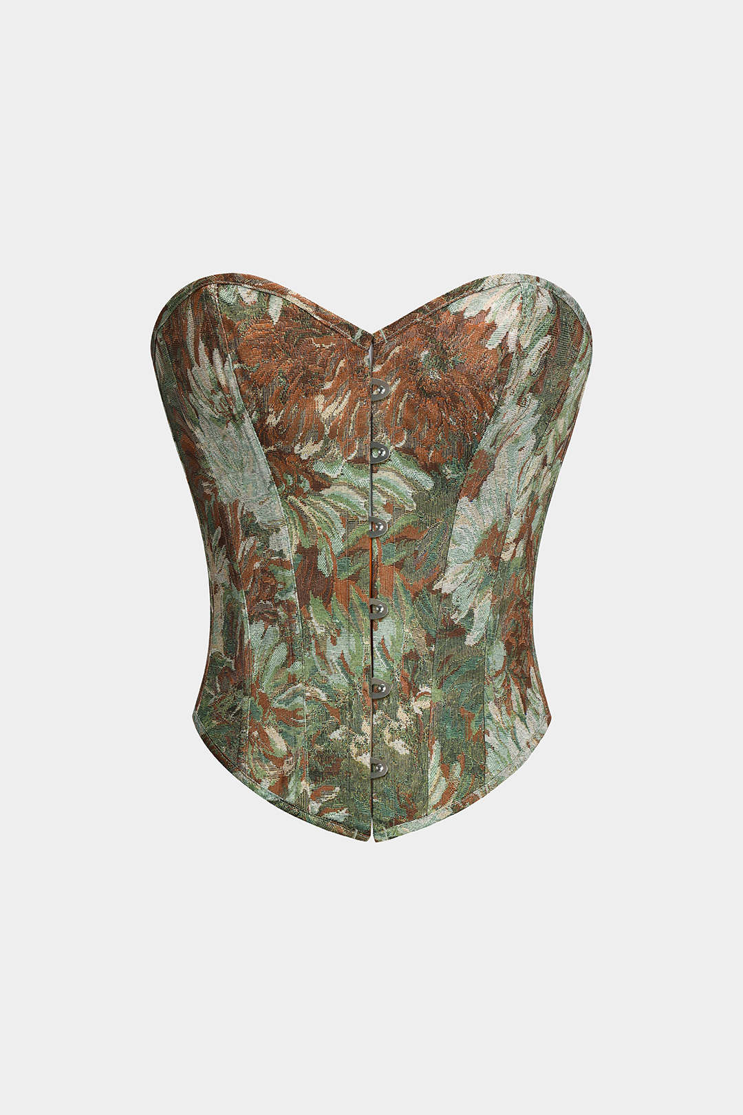 Çiçek Desenli Straplez Bağlama Detaylı Korseli Tüp Üst