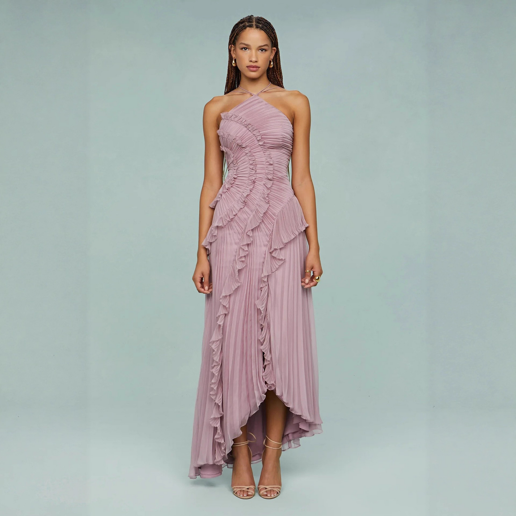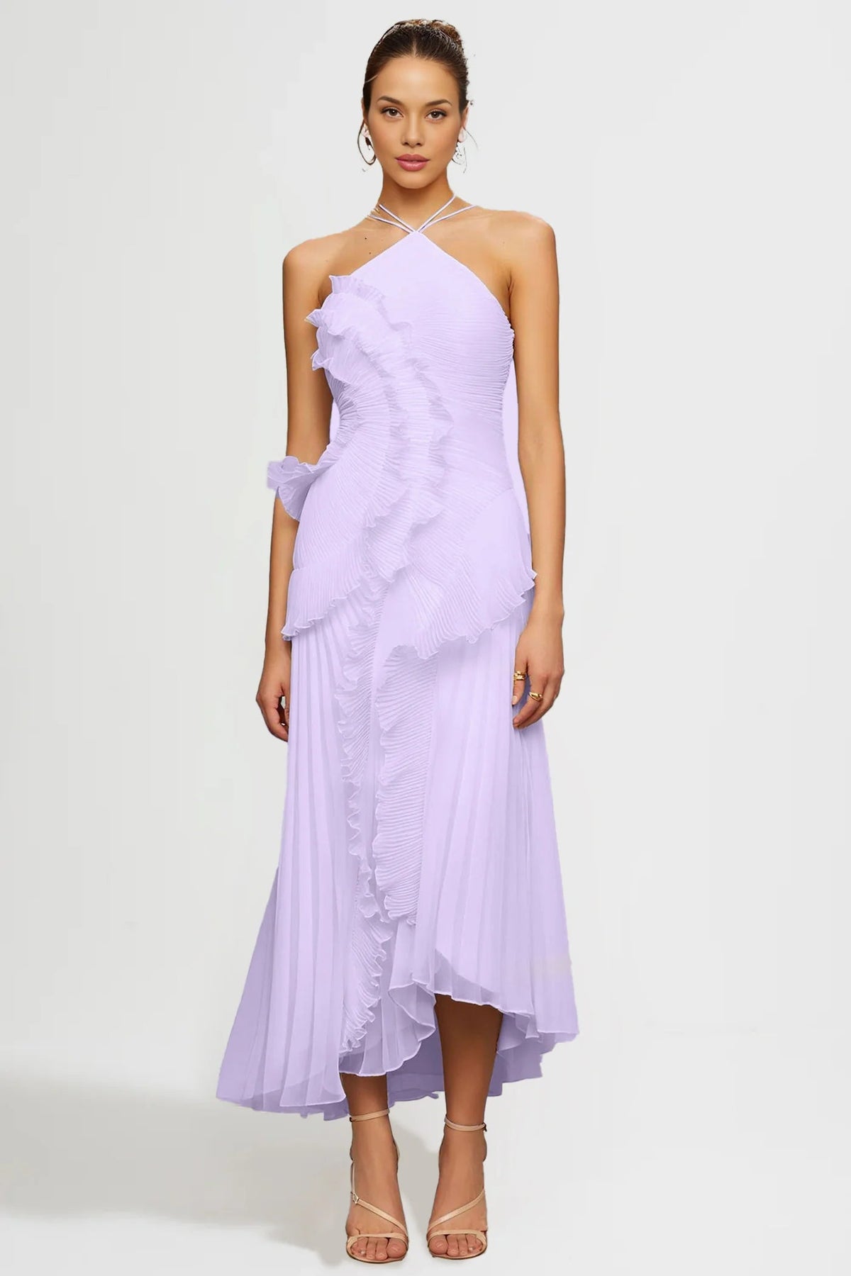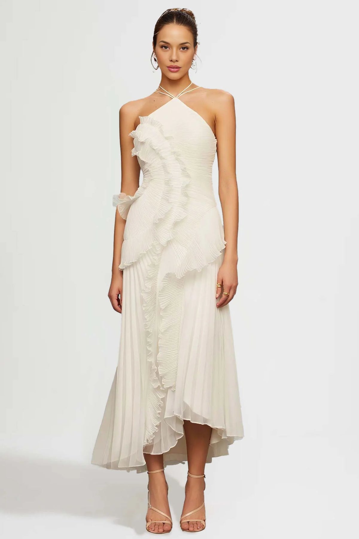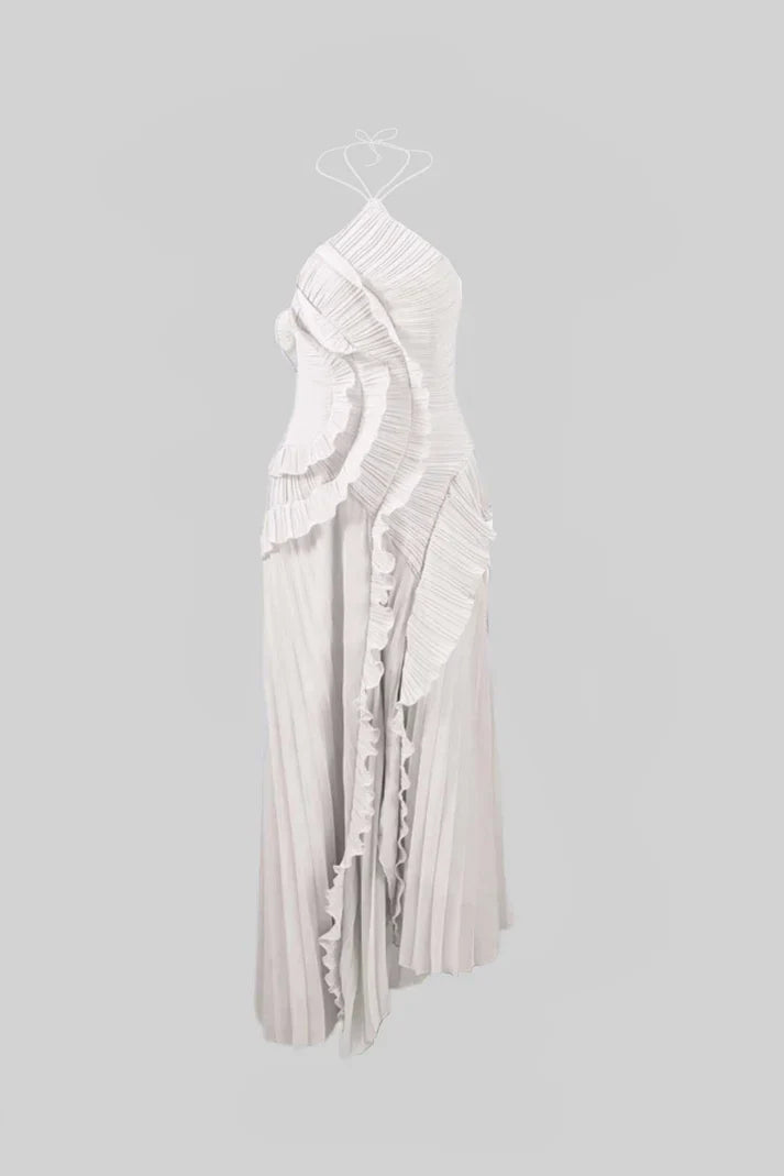Fırfır Detaylı Halter Midi Elbise