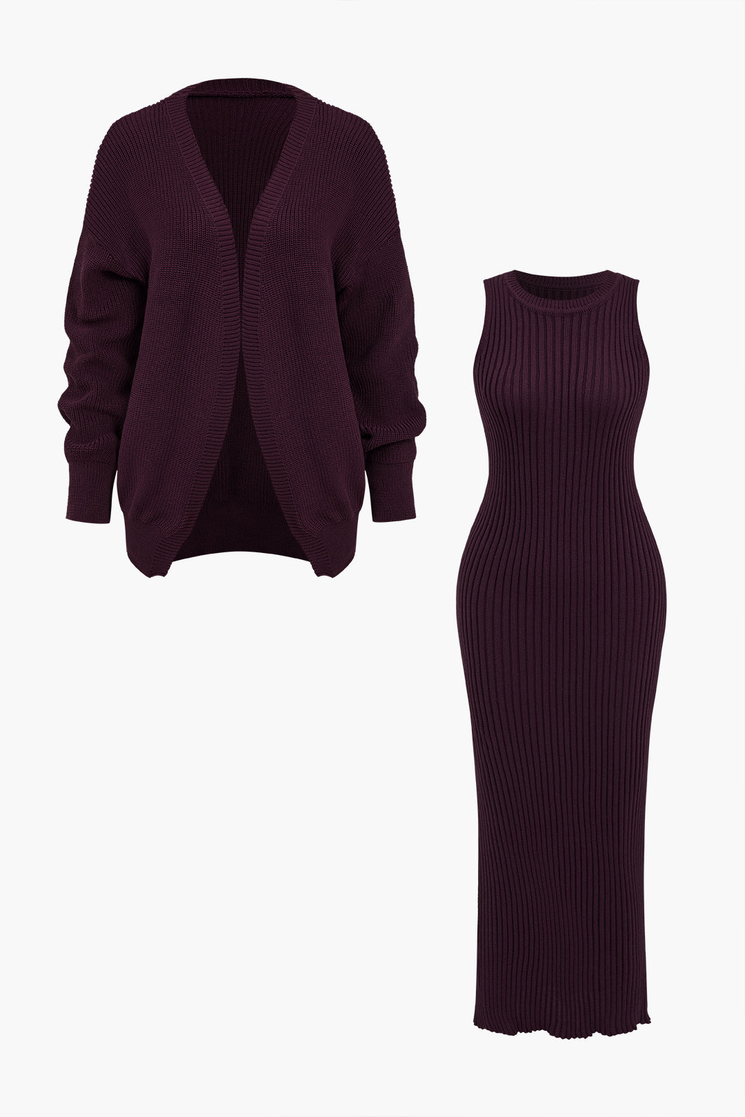 Ribanalı Triko Elbise Ve Hırka Takımı