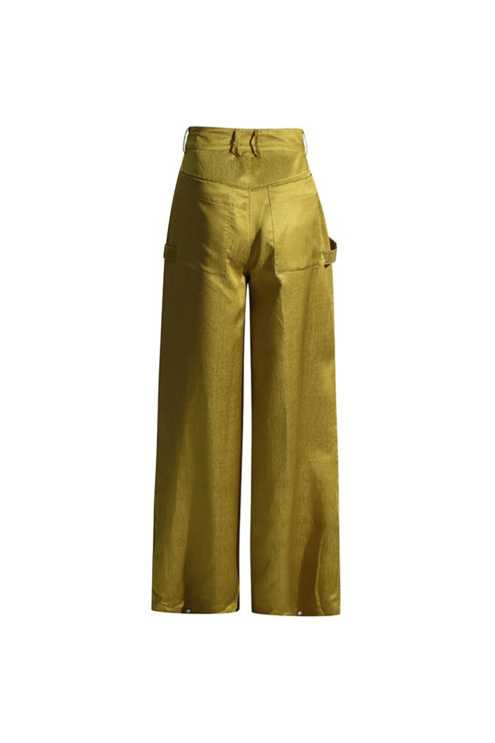 -Detaylar: Orta bel, düğme ve fermuar kapama, çıkarılabilir fermuarlı büyük torba cepler, bol kesim, pileli form