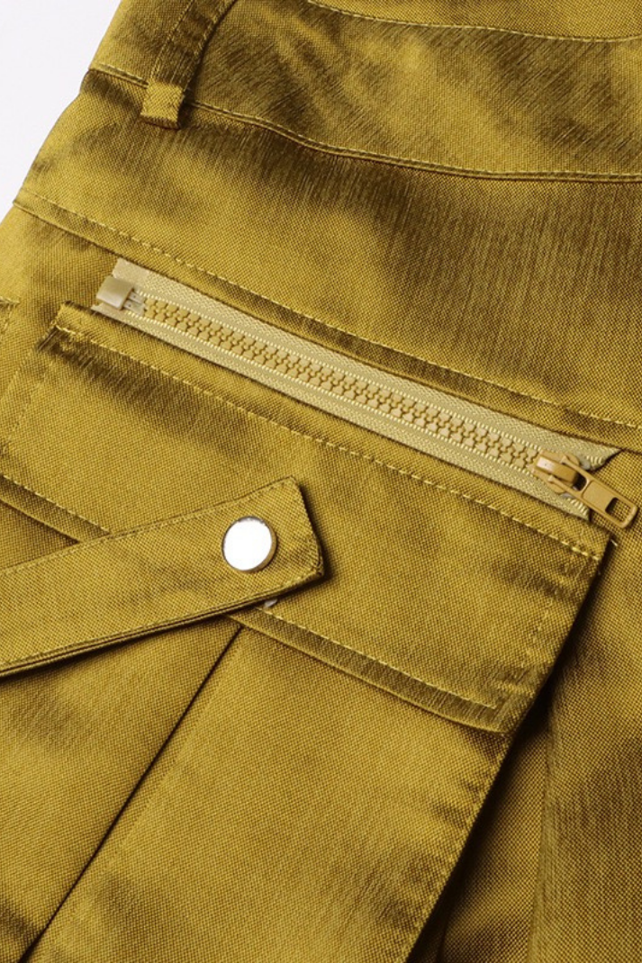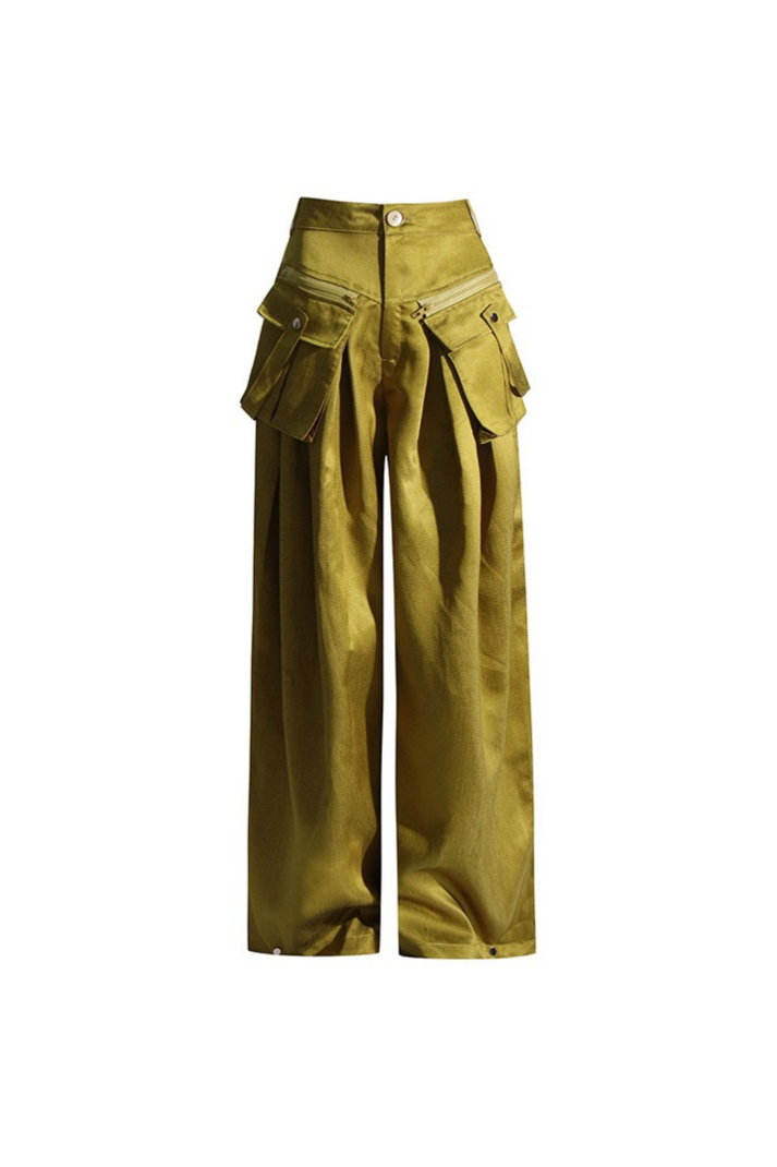-Stil: Saten çıkarılabilir fermuarlı cep detaylı bol kargo pantolon
