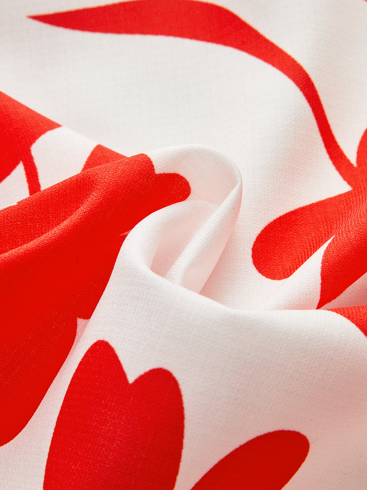 Asimetrik çiçek desenli midi elbise