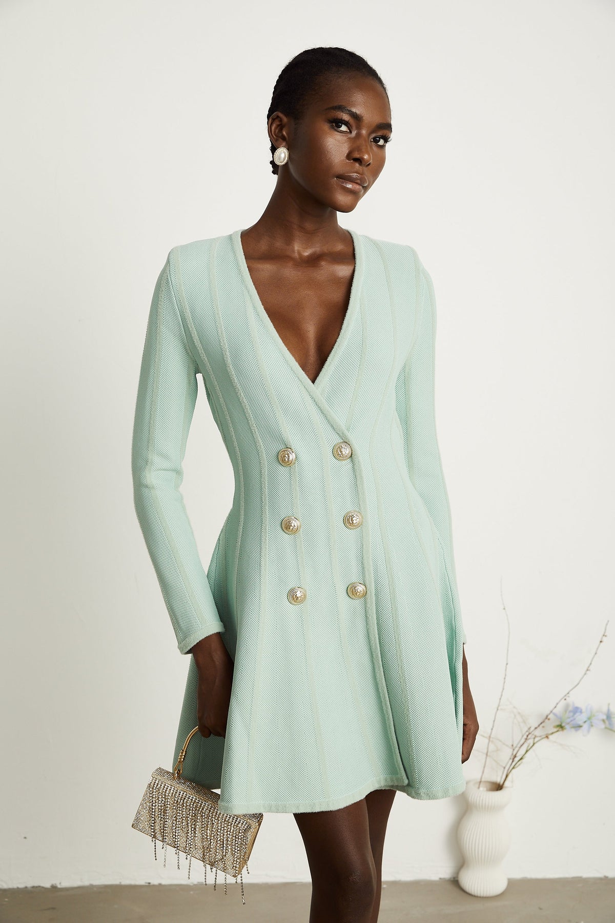 • Kabartmalı altın tonlu düğmeler