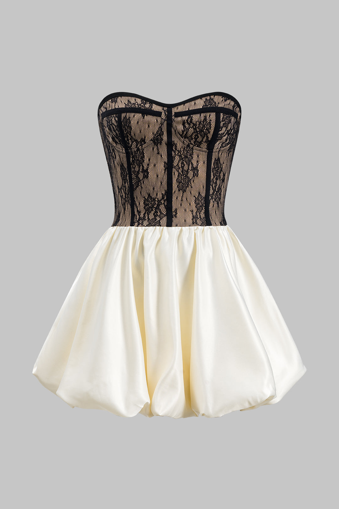 Saten Dantel Pileli Parçalı Bustiyer Korseli Straplez Mini Elbise